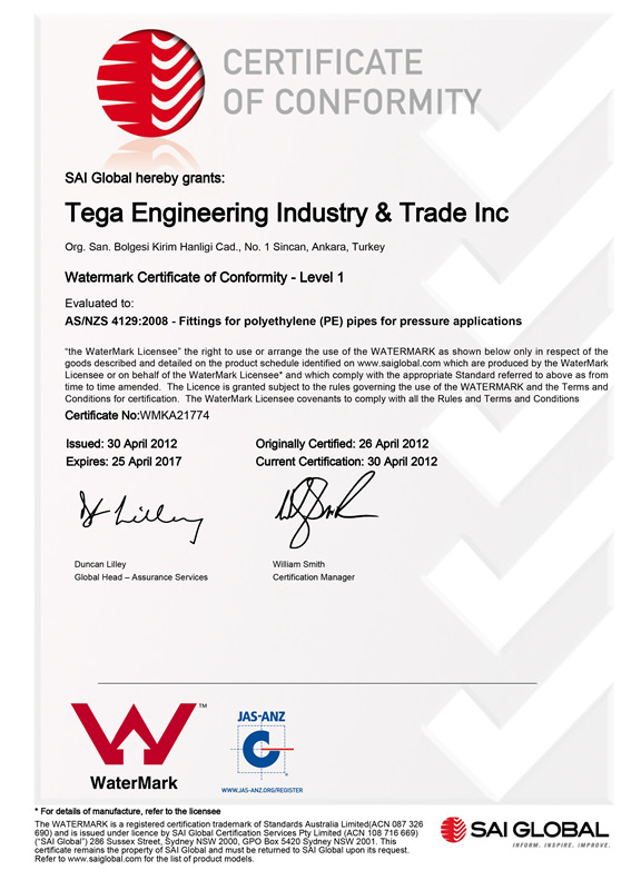 Деталі виробництва тега широко застосовуються в ПЕ трубопроводах Австралії з чотирма розподільними центрами.